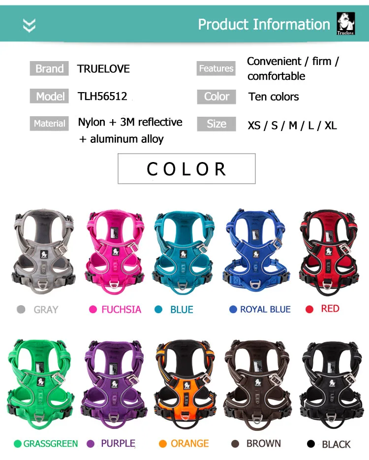 Type: Truelove Front Nylon Dog Harness No Pull Vest Soft Adjustable Safety Harness For DogTRUELOVE Dog harness
